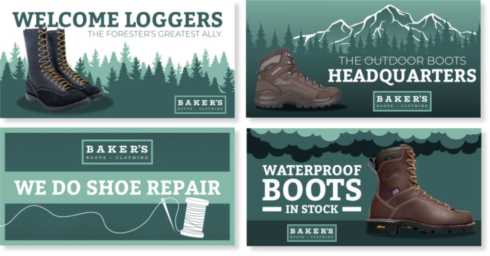 Promotional banners for Baker’s Boots. Created while working at FPW Media