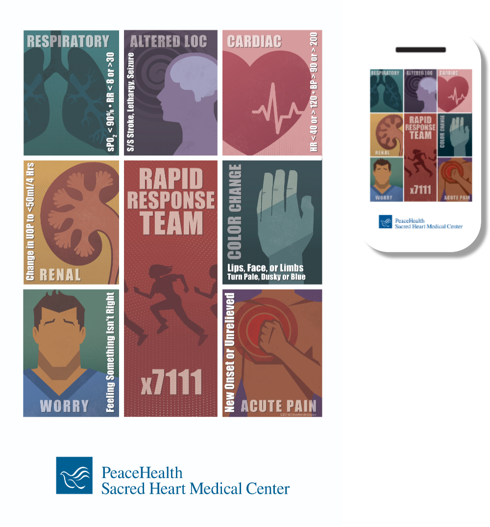 A Logo & Poster i was commissioned to make for PeaceHealth Medical Center at RiverBend. Later, The poster was turned into a badge for the ICU nurses to wear.